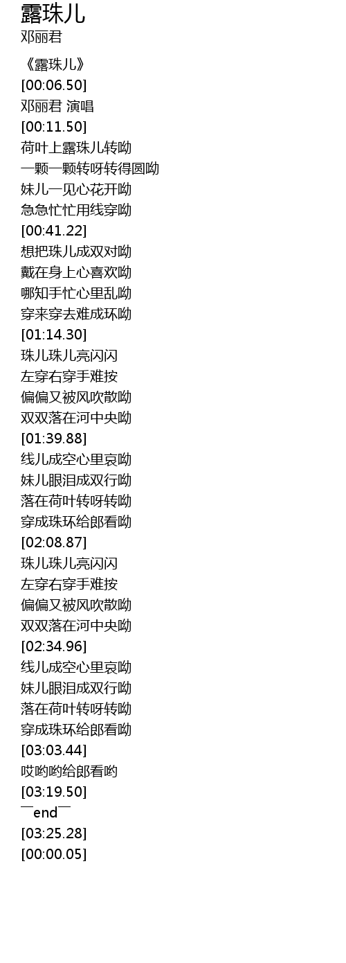 | [02:13.38] | 珠儿珠儿亮闪闪 |