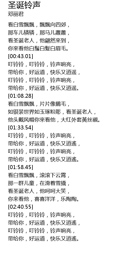 | [02:43.54] | 叮铃铃,叮铃铃,铃声响亮, |