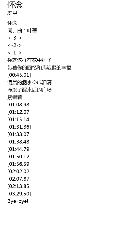 | [03:00.81][01:50.12] | 声音 停在空中 |