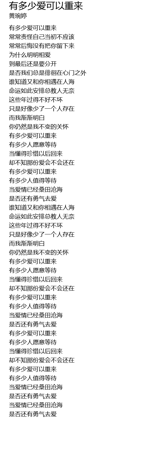 | [00:04.000] | 有多少爱可以重来 |