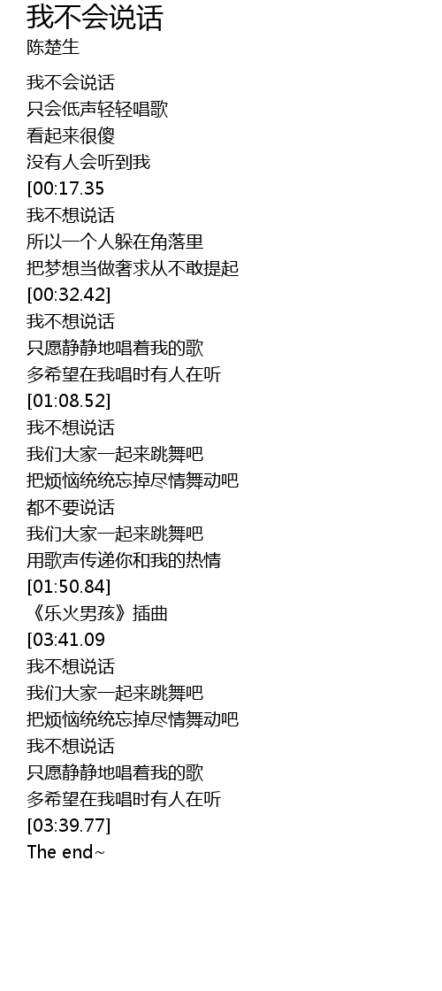 | [00:03.03] | 我不会说话 |