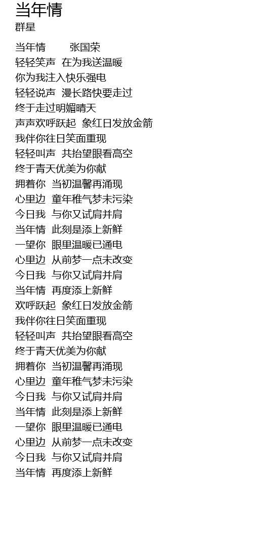 | [02:00.00] | 当年情 再度添上新鲜 |