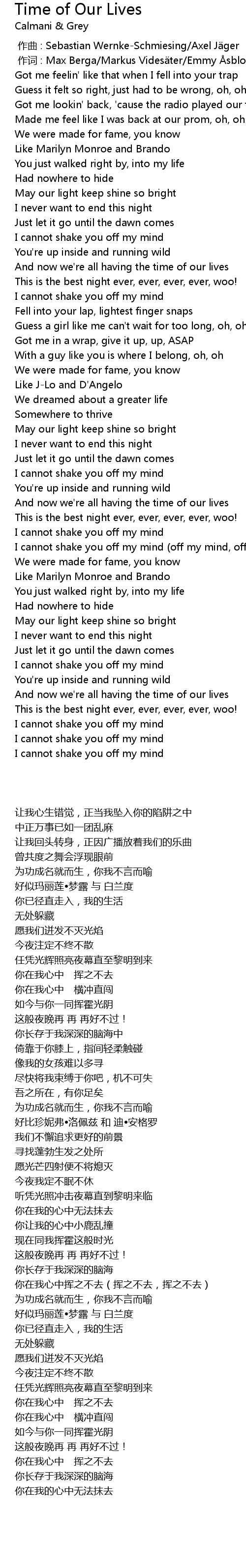| [00:01.000] | 作词 : Max Berga/Markus Videsäter/Emmy Åsblom |