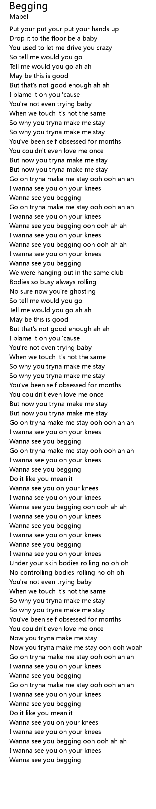 Begging Lyrics
