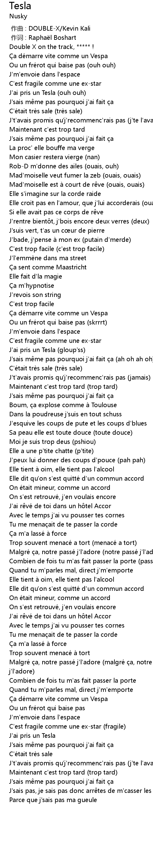 | [00:26.76] | J'ai pris un Tesla (ouh ouh) |