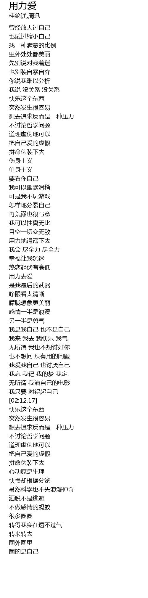 | [02:00.99] | 我爱我自己 也讨厌自己 |