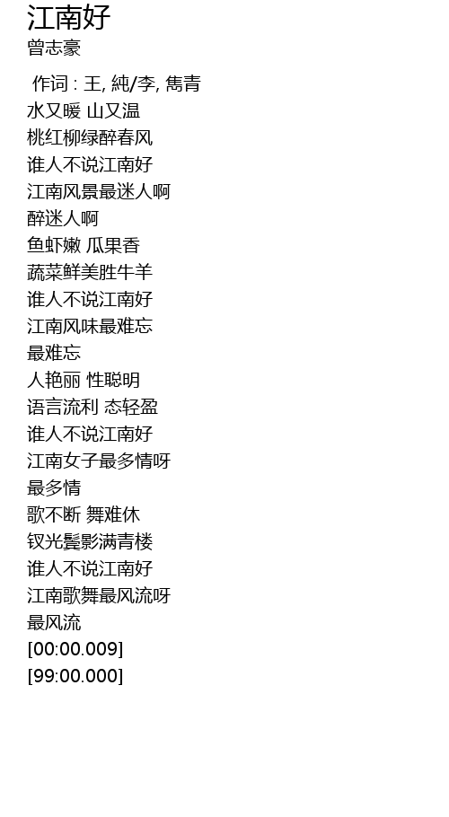 | [01:01.97] | jiāng nán fēng wèi zuì nán wàng |