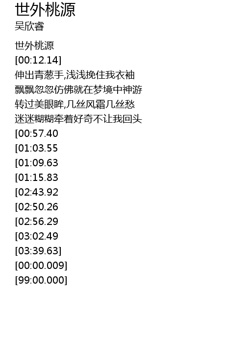 | [03:18.02][02:50.26][01:31.15] | 世外的桃源中用红颜把我等候 |