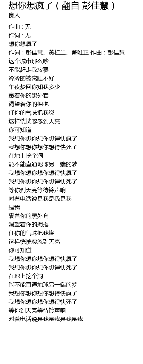 | wǒ xiǎng nǐ xiǎng nǐ xiǎng nǐ xiǎng dé kuài sǐ le | |