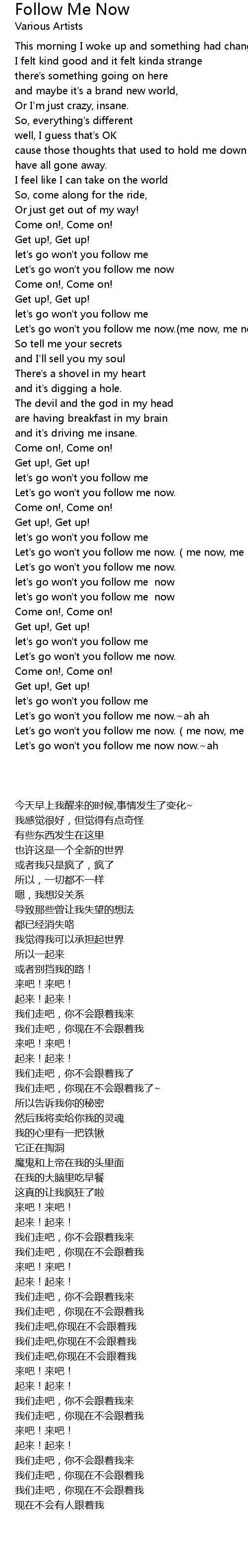 | [01:35.10] | Let's go won't you follow me now.(me now, me now.)x2 |