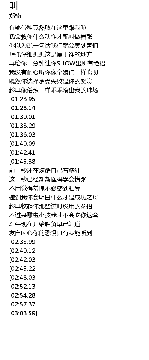 | [00:36.13][01:23.95] | 叫 如果感到怕就大声叫 |
