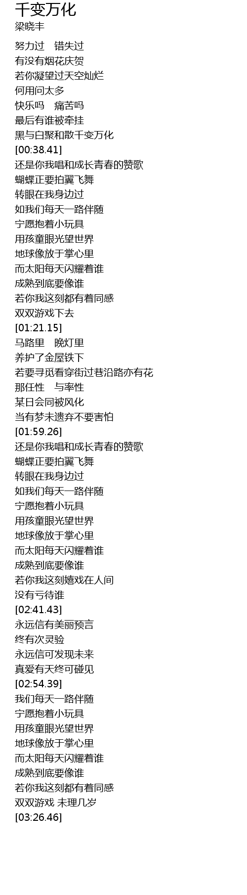 | [00:32.52] | hēi yǔ bái jù hé sàn qiān biàn wàn huà |