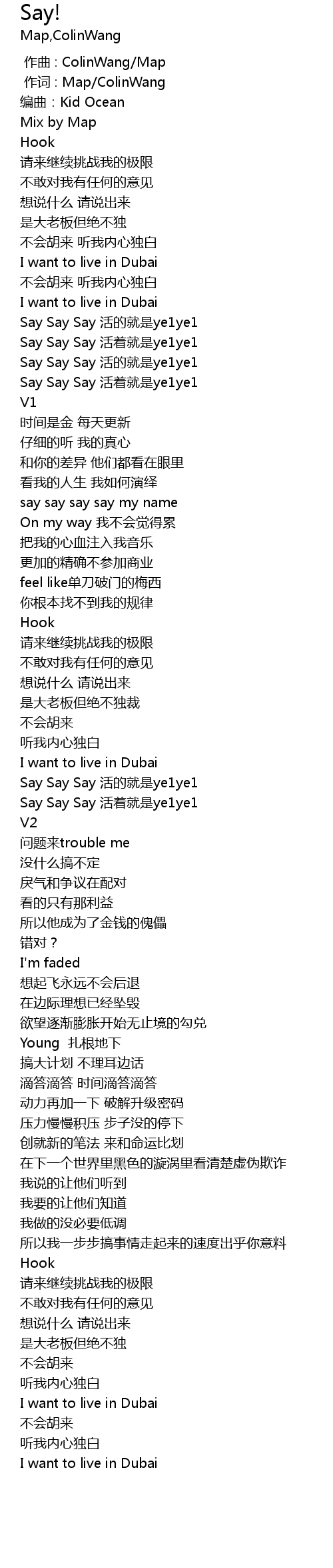 | [00:53.67] | Say Say Say huó zhe jiù shì ye1ye1 |