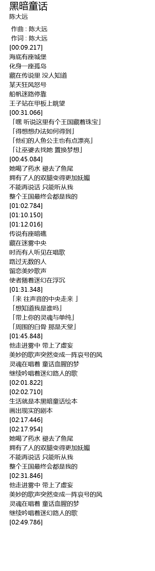 | [00:00.000] | 作曲 : 陈大远 |
