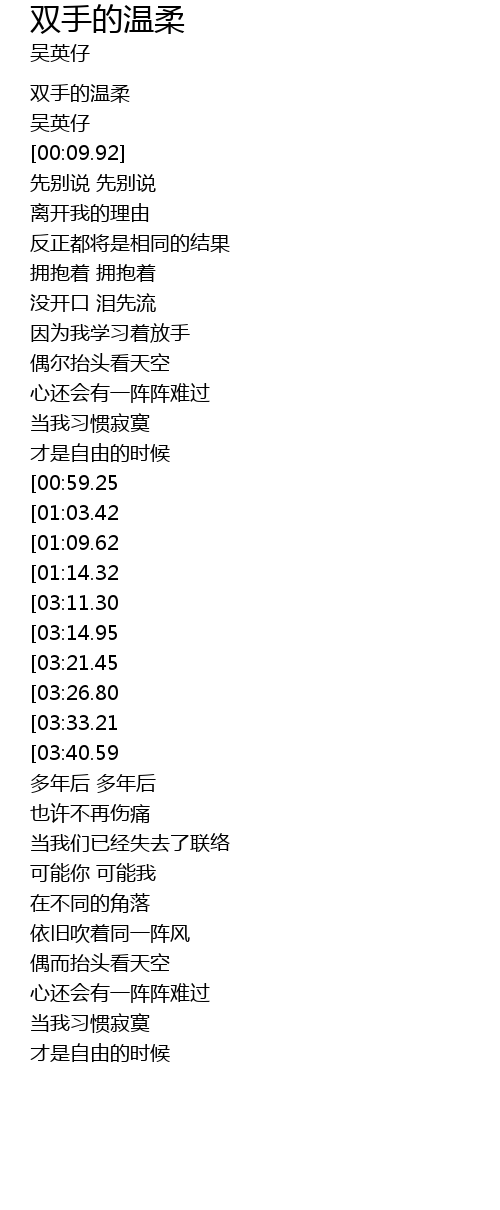 | [00:01.56] | shuāng shǒu de wēn róu |