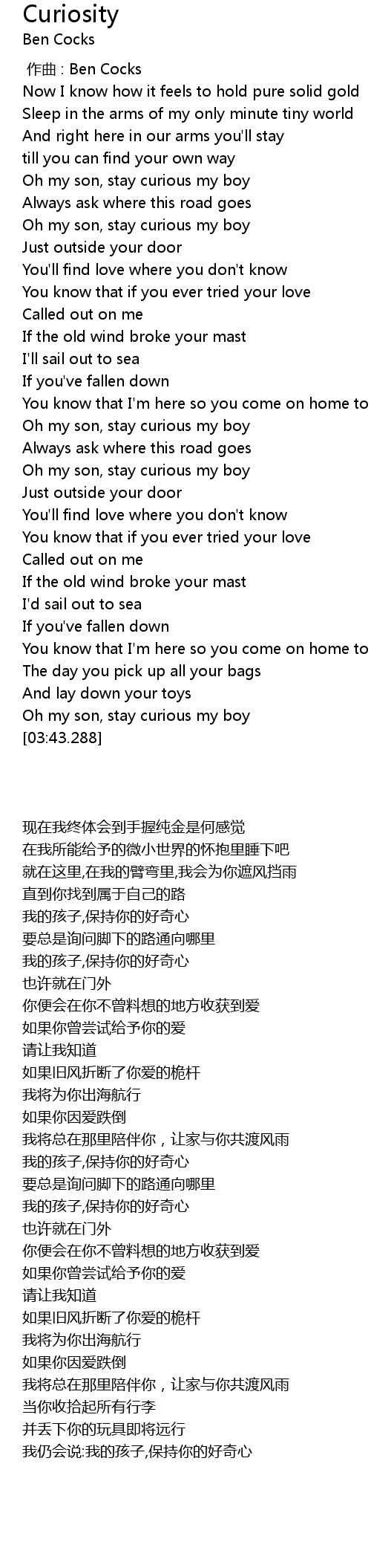 | [02:29.483] | Oh my son, stay curious my boy |