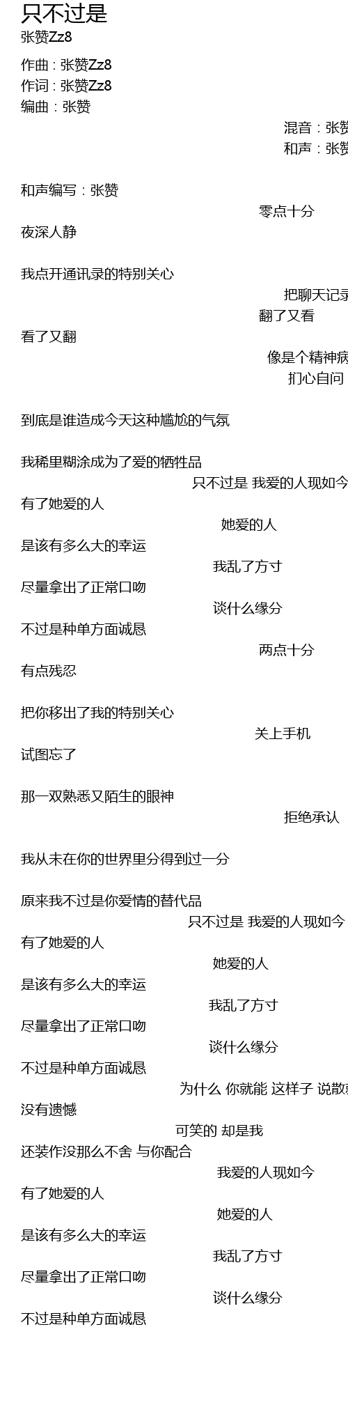 | 只不过是 我爱的人现如今 有了她爱的人 | |