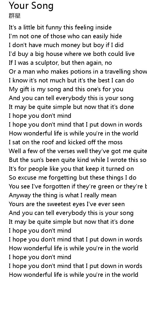 | And you can tell everybody this is your song | |