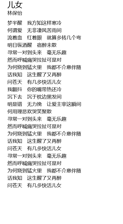 | Song | 儿女 |