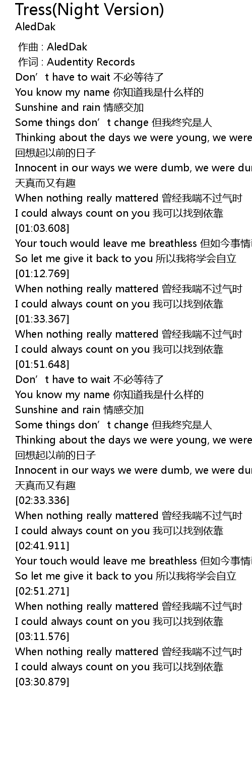 | [02:14.527] | Don' t have to wait bu bi deng dai le |