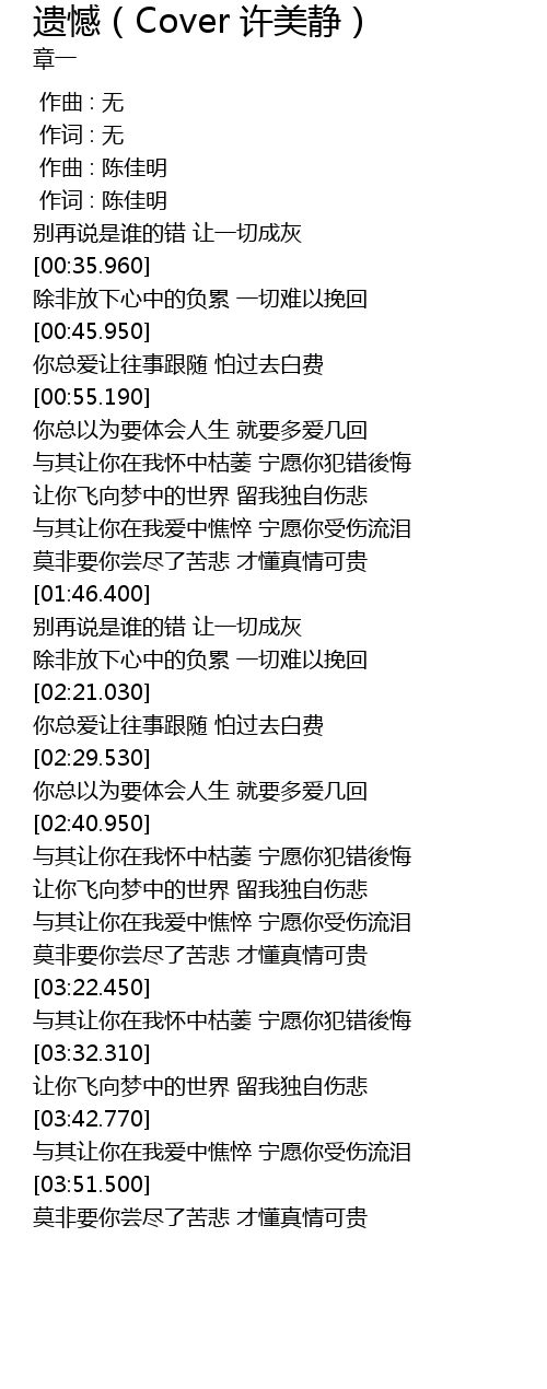 | [02:42.580] | yu qi rang ni zai wo huai zhong ku wei ning yuan ni fan cuo hou hui |