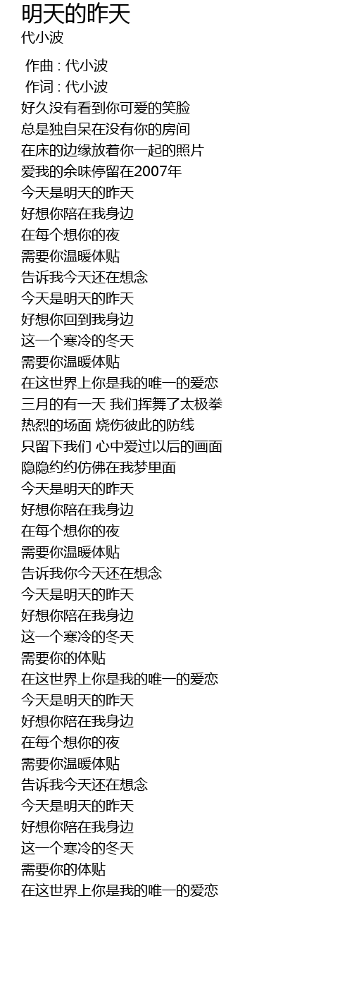 | [00:00.00] | 作曲 : 代小波 |