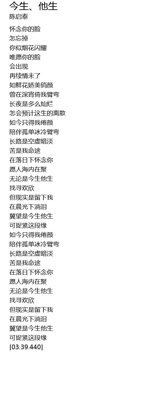 | [03:24.730] | jì wàng shì jīn shēng tā shēng |