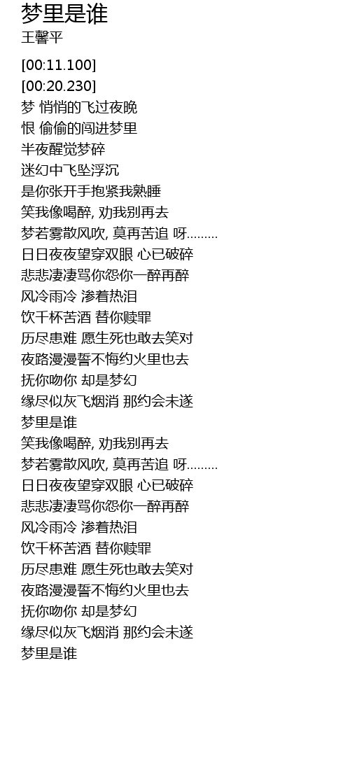 | [01:06.730] | meng ruo wu san feng chui, mo zai ku zhui ya......... |