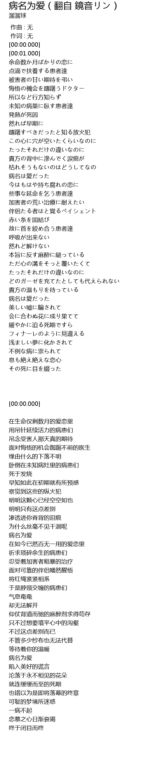 | [00:55.390] | 病名は愛だった |