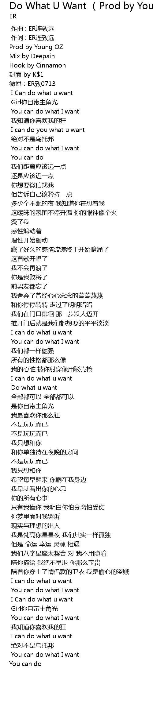 | Song | Do What U Want (Prod by Young OZ) |
