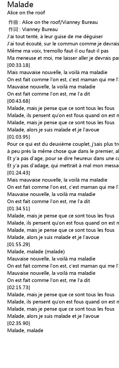 | [01:59.37] | Malade, malade (malade) |