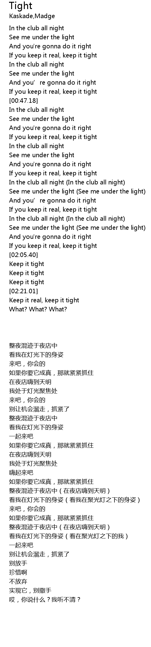 | [00:44.69] | If you keep it real, keep it tight |