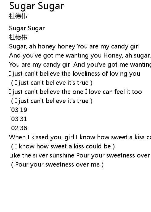 | [04:02][03:31][02:25][01:27] | And you've got me wanting you Honey, ah sugar, sugar |