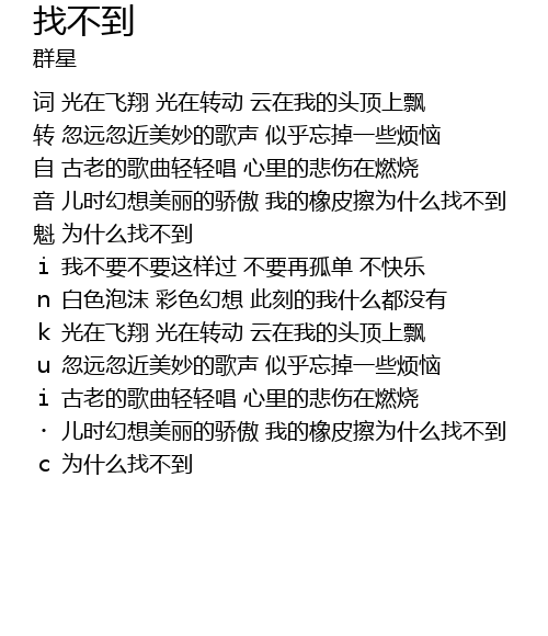 | [03:09.54] | wèi shí me zhǎo bu dào |