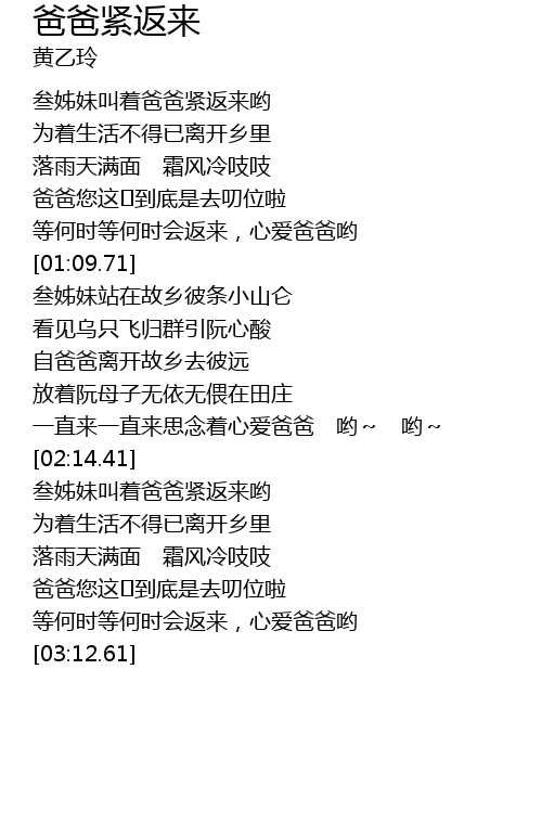 | [02:25.29] | 叁姊妹叫着爸爸紧返来哟 |
