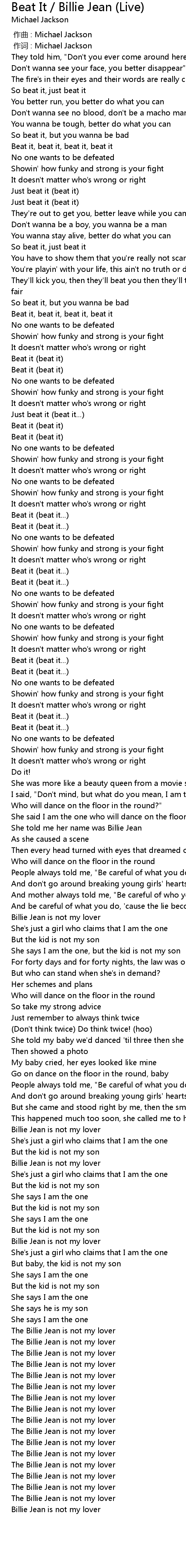| [00:01.000] | 作词 : Michael Jackson |