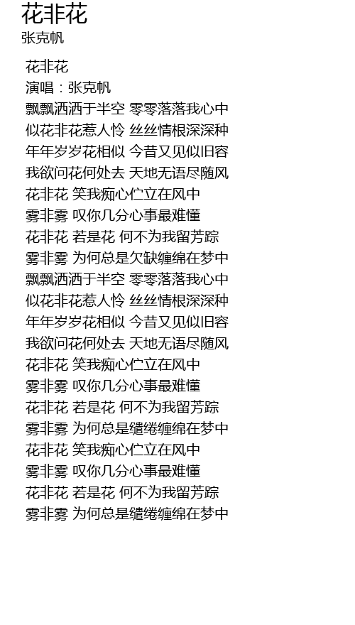 | [00:58.880] | 花非花 若是花 何不为我留芳踪 |