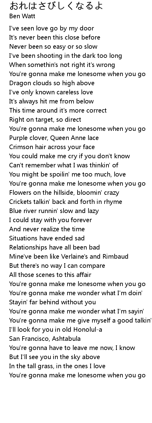 | [03:10.41] | You're gonna make me lonesome when you go |