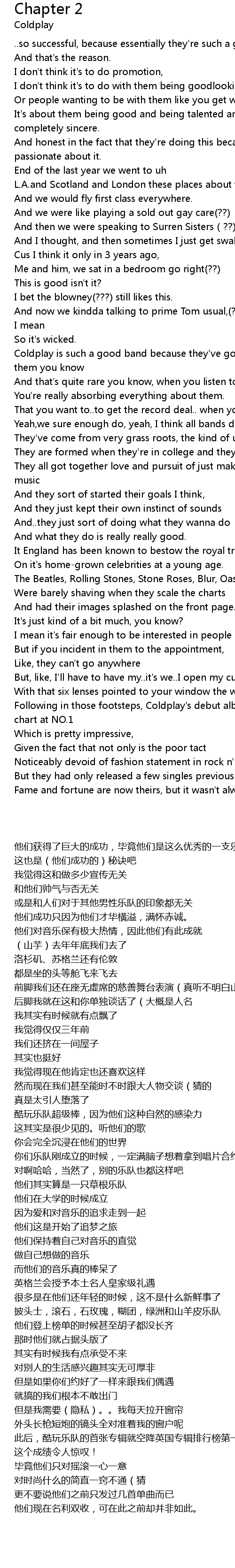 | [02:39.82] | Following in those footsteps, Coldplay's debut album entered the UK chart at NO.1 |