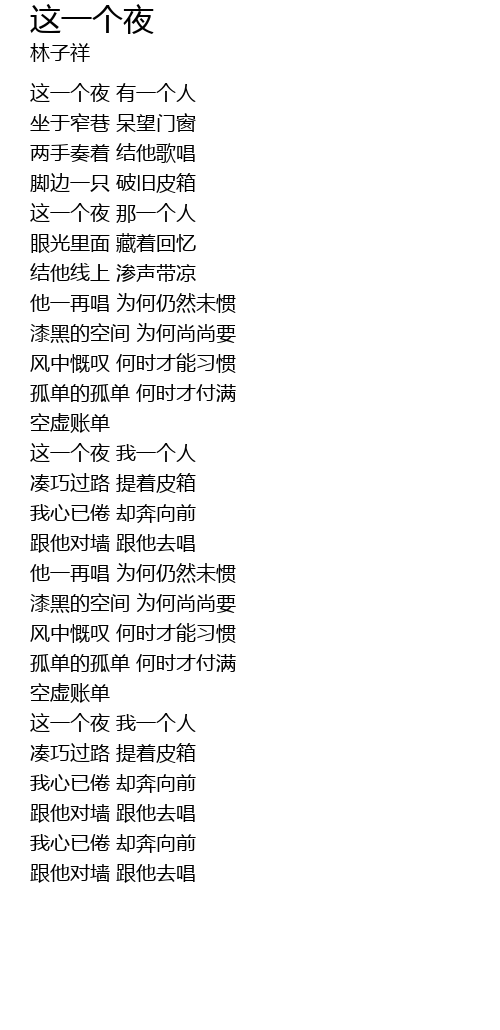 | [02:39.00] | zhè yí gè yè wǒ yí ge rén |