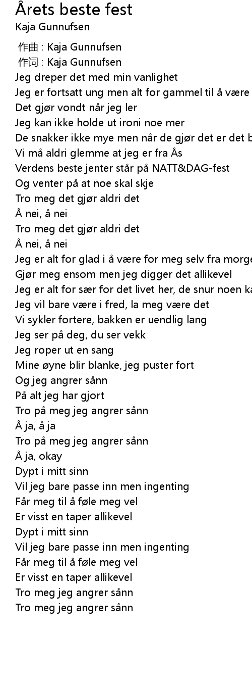 | [00:00.024] | 作词 : Kaja Gunnufsen |