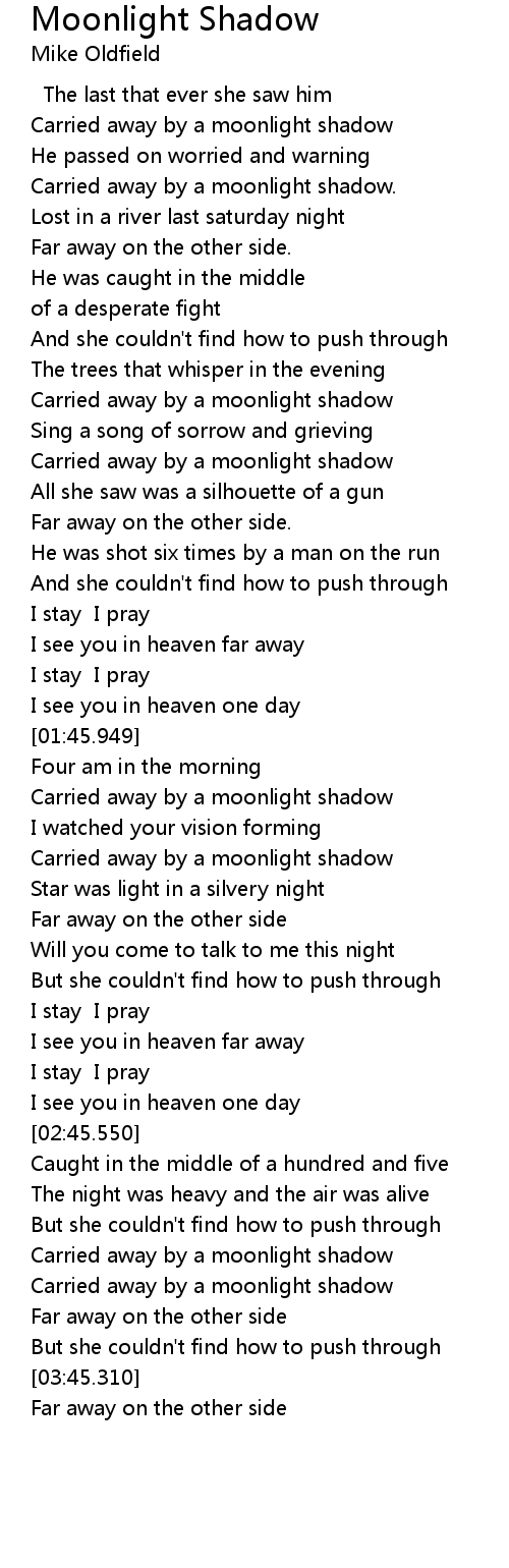 | [00:42.990] | Carried away by a moonlight shadow. |