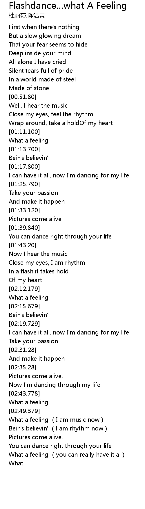 | [02:20.879] | I can have it all, now I' m dancing for my life |