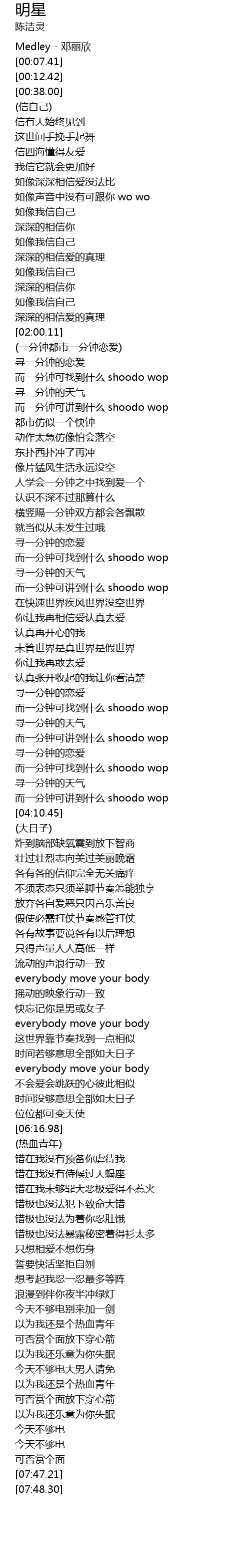 | [02:06.90] | yī fēn zhōng dū shì yī fēn zhōng liàn ài |