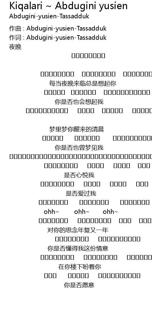 | 作词 : Abdugini-yusien-Tassadduk | |
