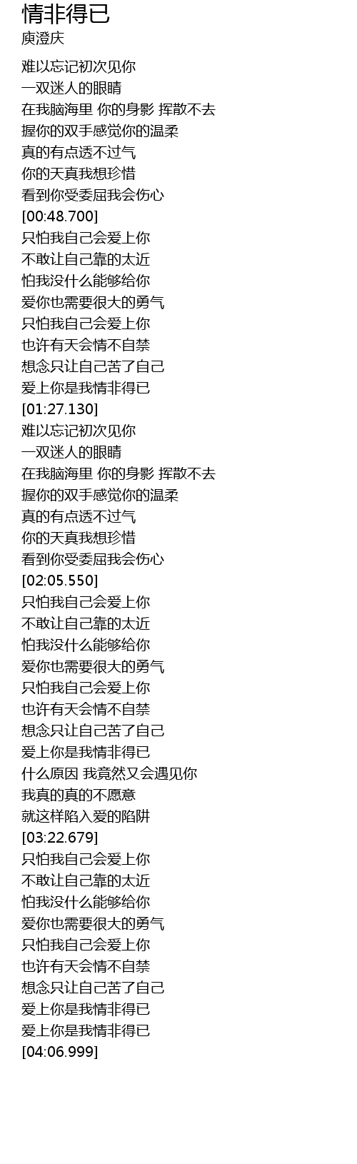 | [03:57.890] | 爱上你是我情非得已 |