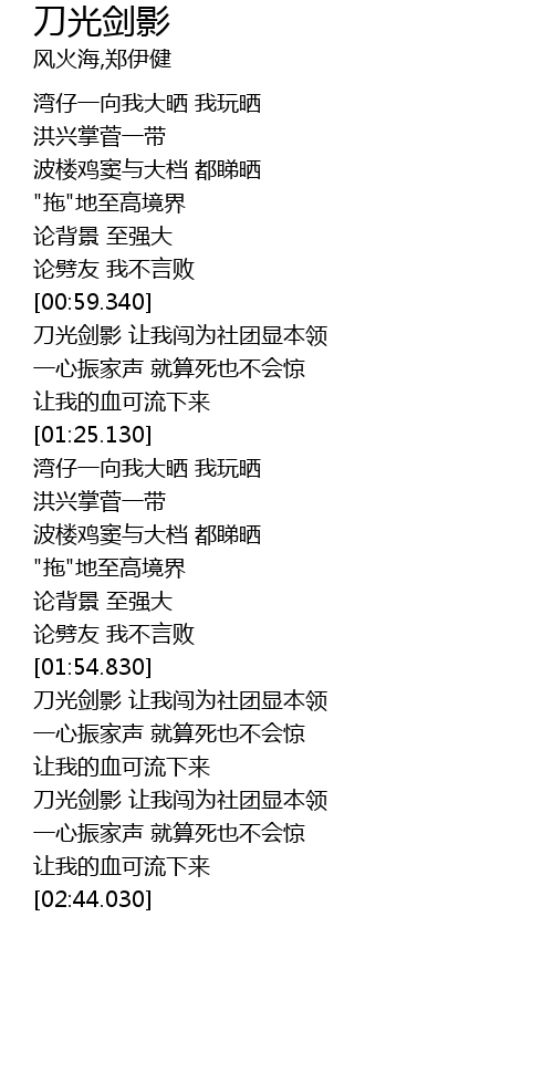 | [01:55.510] | 刀光剑影 让我闯为社团显本领 |