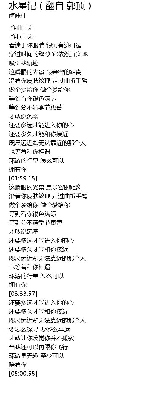 | [03:22.23] | 环游的行星 怎么可以 |