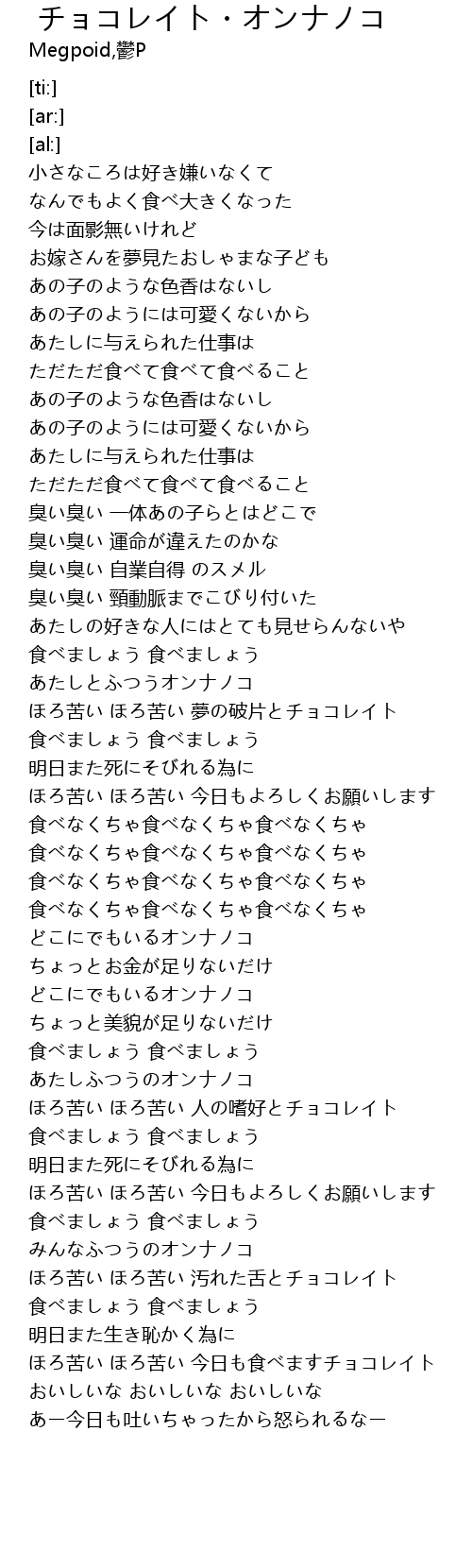 | [03:06.18] | ほろ苦い ほろ苦い 人の嗜好とチョコレイト |