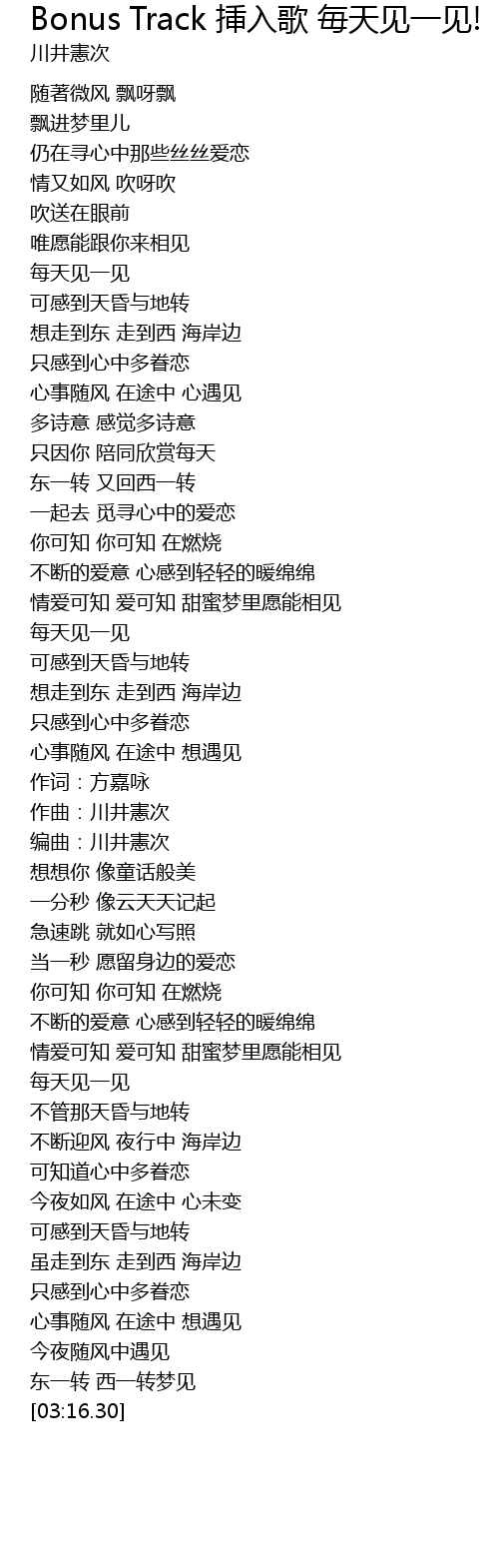 | Song | Bonus Track 挿入歌 毎天见一见! |